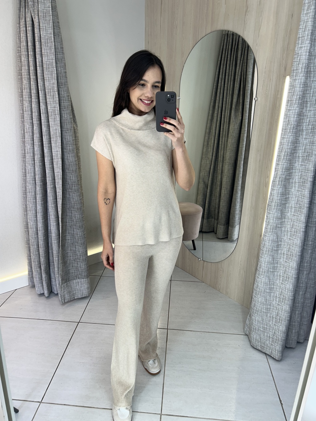 A calça, com elástico na cintura garante um ajuste perfeito ao corpo, valorizando suas curvas. Este conjunto é versátil, ideal para diversas ocasiões, desde um passeio casual até um encontro especial.